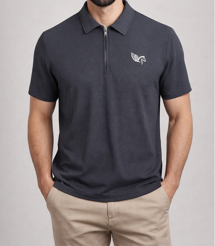 Elyzaar Men’s Textured Quarter-Zip Polo Shirt – Premium Olive Green Short Sleeve Golf Polo – Luxury Summer Casual Regular Fit